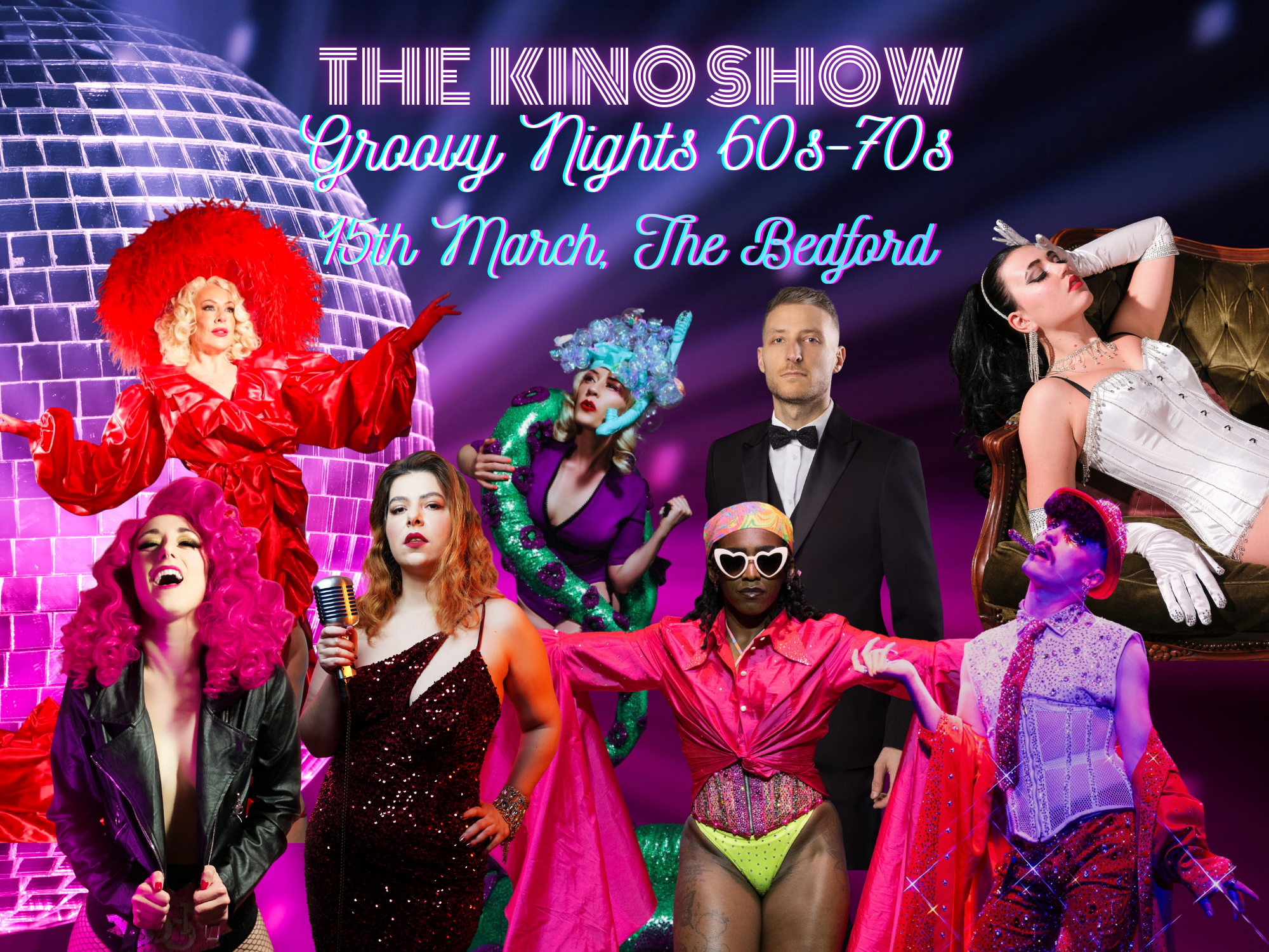 The Kino Show returns on the 15th March at The Bedford with a brand-new lineup, powerful headliners, and international cabaret performers for an explosive night! You asked for it! After the success of the previous Kino Shows, We bring another edition of 60s-70s Cabaret, bolder and louder with disco and sparkles!
