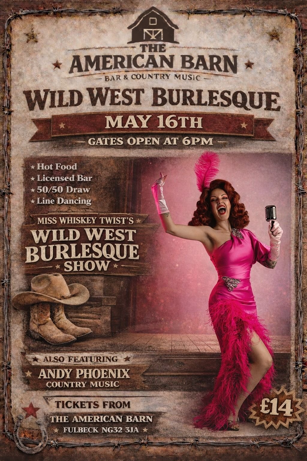 Grab your friends, relatives and associates for an amazing Country Night & Burlesque Show at the closest thing to Texas, this side of the Atlantic.